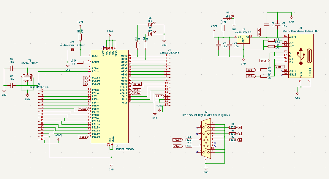After browsing the Hack CLub slack, I saw there was a zoom call for Blueprint, the hardware program and I decided to join in. The theme was a Trace Race, where you try to make a board in the shortest amount of time. Just an hour before I saw a VGA Library for the exact same STM32 module in the challenge and I got an idea forming.